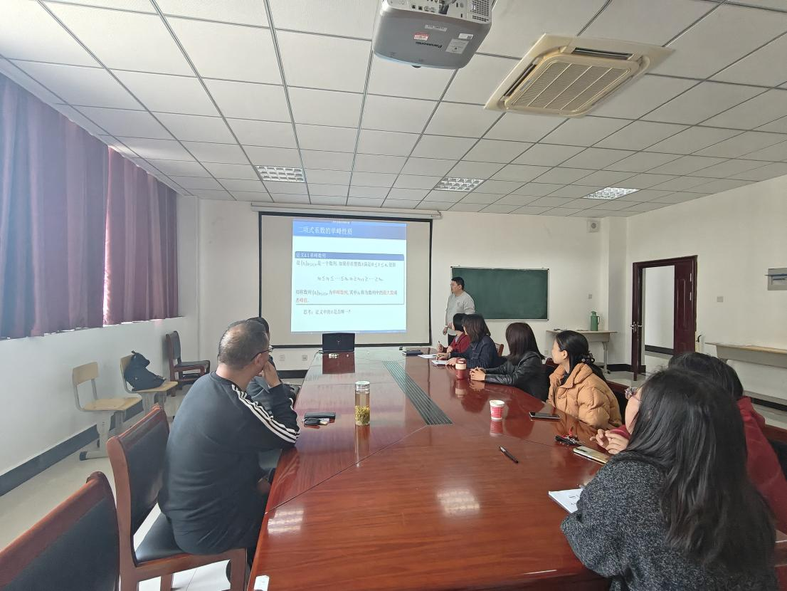 4月1日下午,数学与统计学院高等数学教研室在I楼405会议室举办青年教师教学展示活动。青年教师赵敬博士以“二项式系数的单峰性质”为题进行教学展示,教研室全体教师到场观摩,并开展评课研讨。