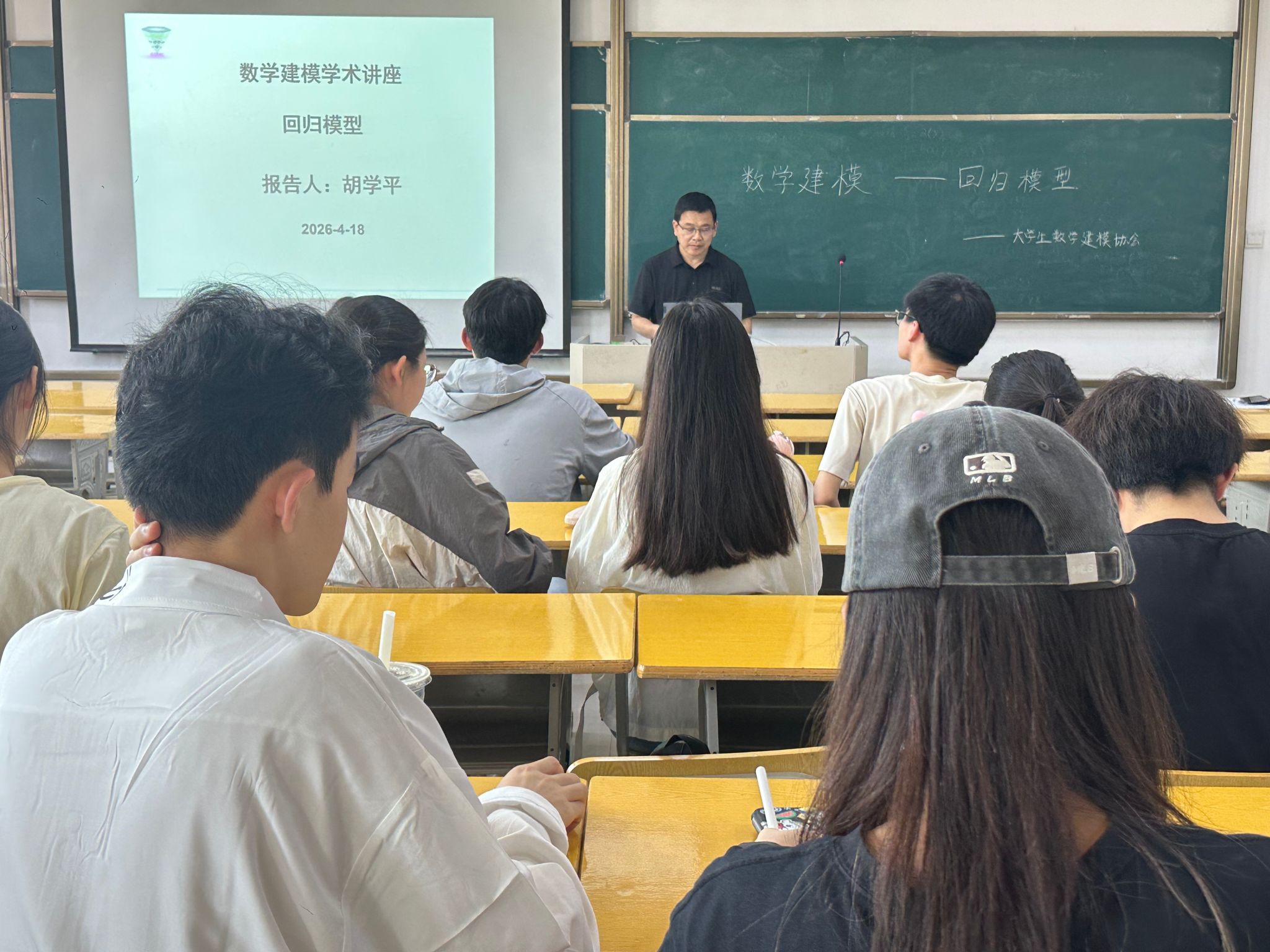 4月18日下午,数学与统计学院大学生数学建模协会在I楼502教室举办数学建模专题讲座。本次活动邀请胡学平教授主讲,以《回归模型》为主题,与全校各专业数学建模爱好者交流学习。