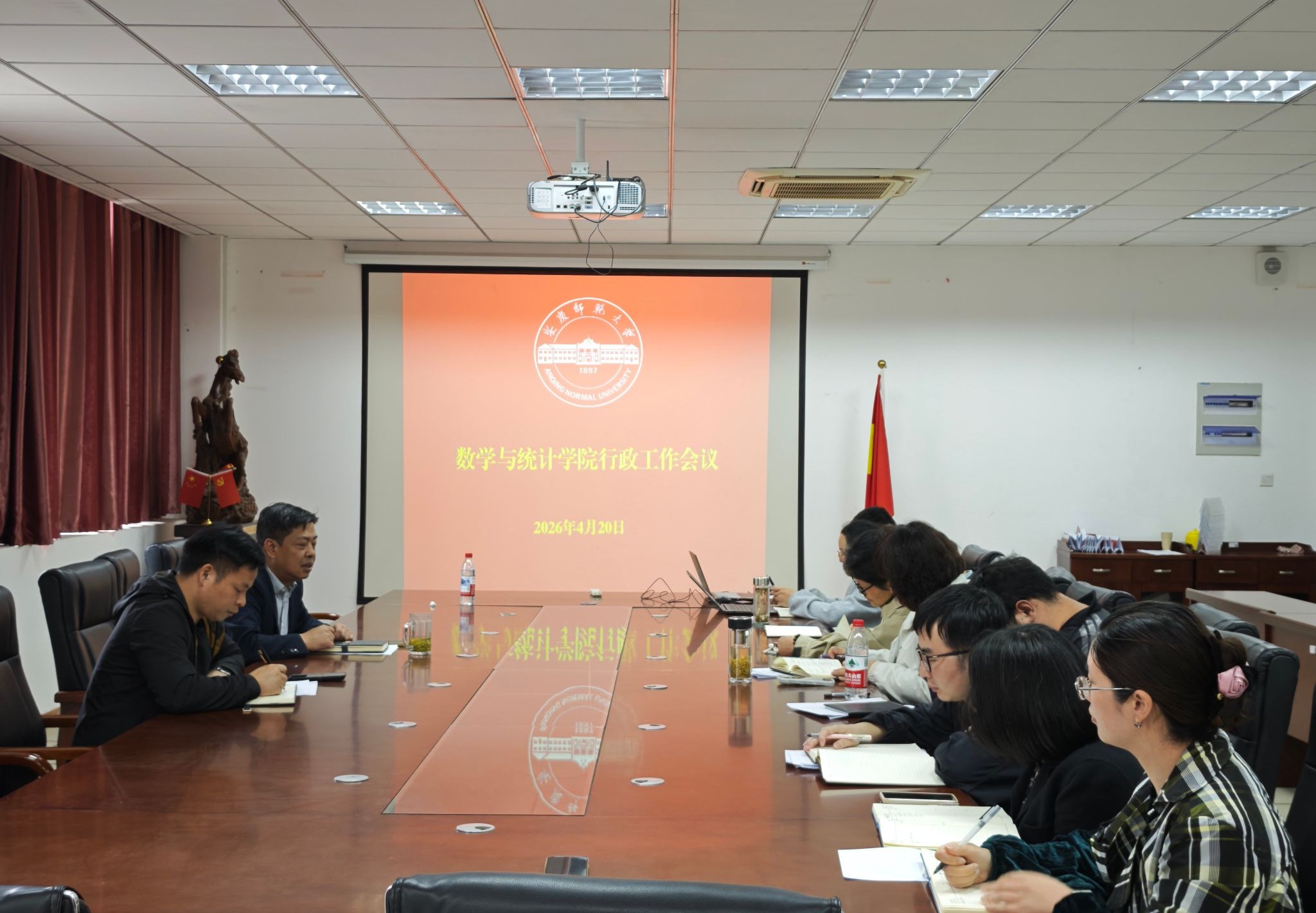 4月20日,数学与统计学院在I楼307会议室召开行政工作例会,专题布置学院2026年度重点工作。数学与统计学院院长张海、副院长陈文兵、各办公室负责人及毕业班辅导员参加会议。会议由张海主持。