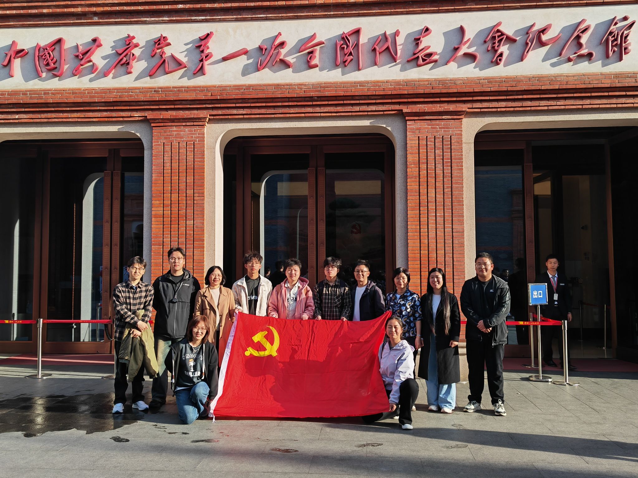 2022级\2023级部分学生即将赴美学习,在行前,师生一行前往中国共产党第一次全国代表大会纪念馆开展党史主题教育。在“伟大的开端”主题展厅,全息技术重现《新青年》编辑部场景,与珍贵历史文献相得益彰,复原会议室内的历史场景让师生们深受触动。彭芳珍书记在现场教学中强调:“作为中外合作办学专业的学生,既要具备国际视野,更要厚植家国情怀,用专业知识服务国家发展需求”。