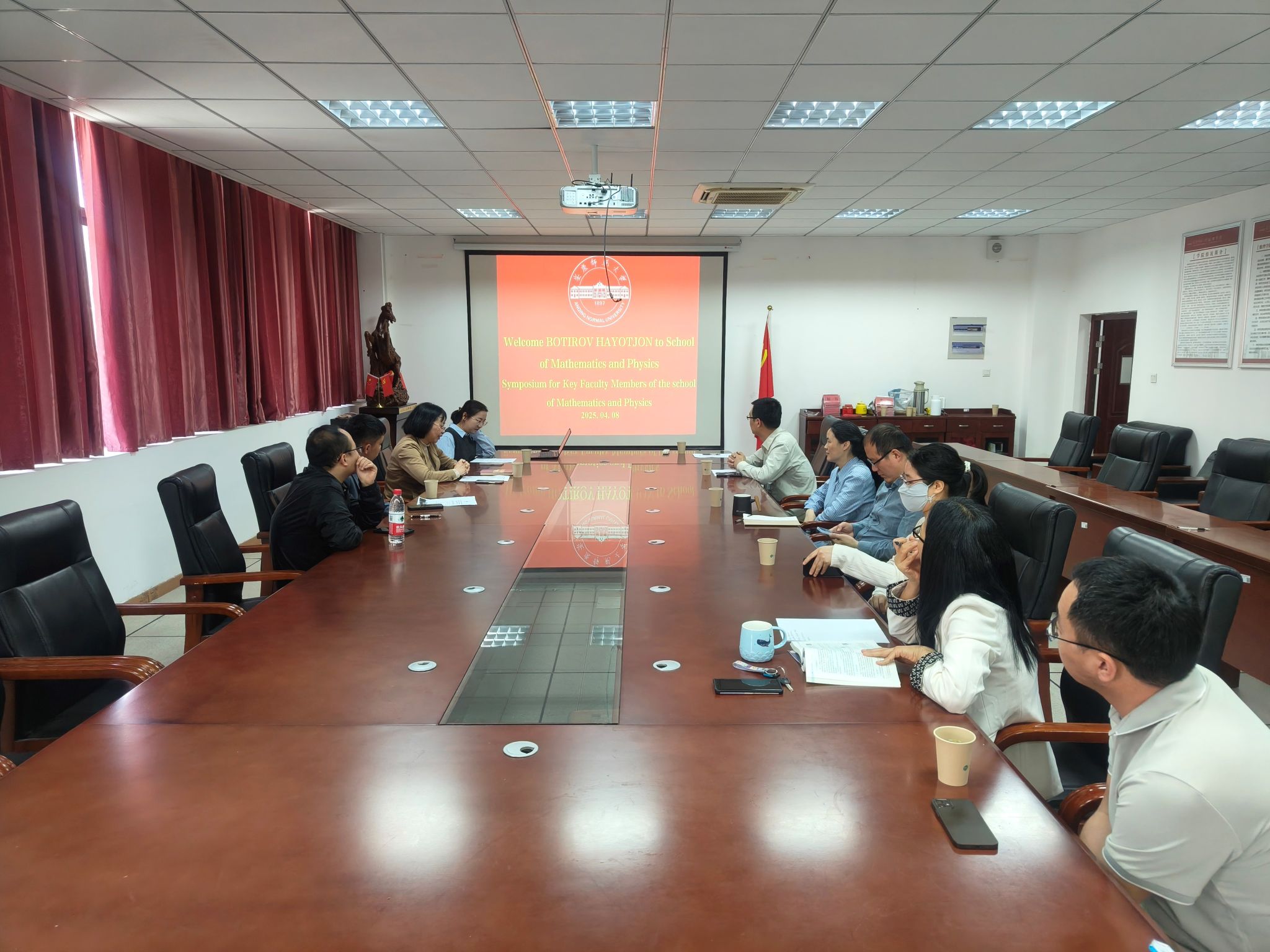 4月8日上午,数理学院副院长易明芳在数理楼307举行隆重的见面会。见面会上,易明芳对博季罗夫表示热烈欢迎,她介绍了数理学院的基本情况、师资队伍、专业设置及在科学研究、人才培养等方面所取得的成绩。她希望双方以此为契机,在教育教学、人才培养、科学研究等方面开展深入合作,并介绍了本次访问活动的具体日程安排。