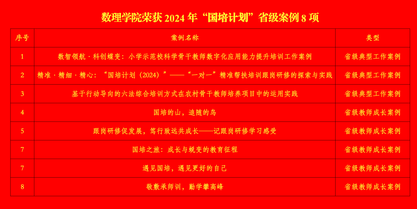 近日,安徽省教育厅公布2024年“国培计划”典型案例遴选结果,数理学院荣获“国培计划”省级典型工作案例3项,荣获“国培计划”省级教师成长案例5项。