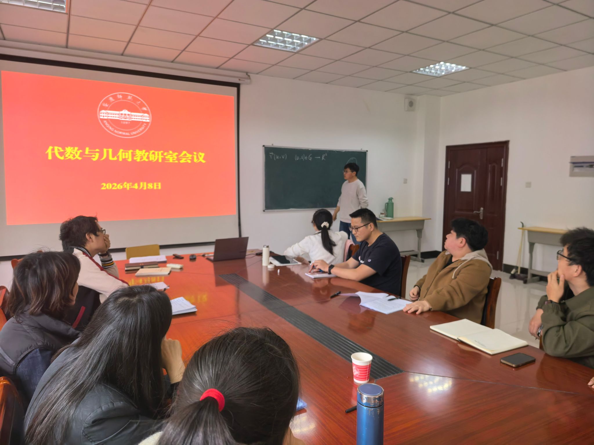 4月8日下午,数学与统计学院代数与几何教研室在I楼405会议室举办了青年教师讲课磨课活动。青年教师徐鹏飞博士以微分几何中的“第一基本形式”为题进行教学展示,教研室全体教师到场观摩并参与评课研讨。