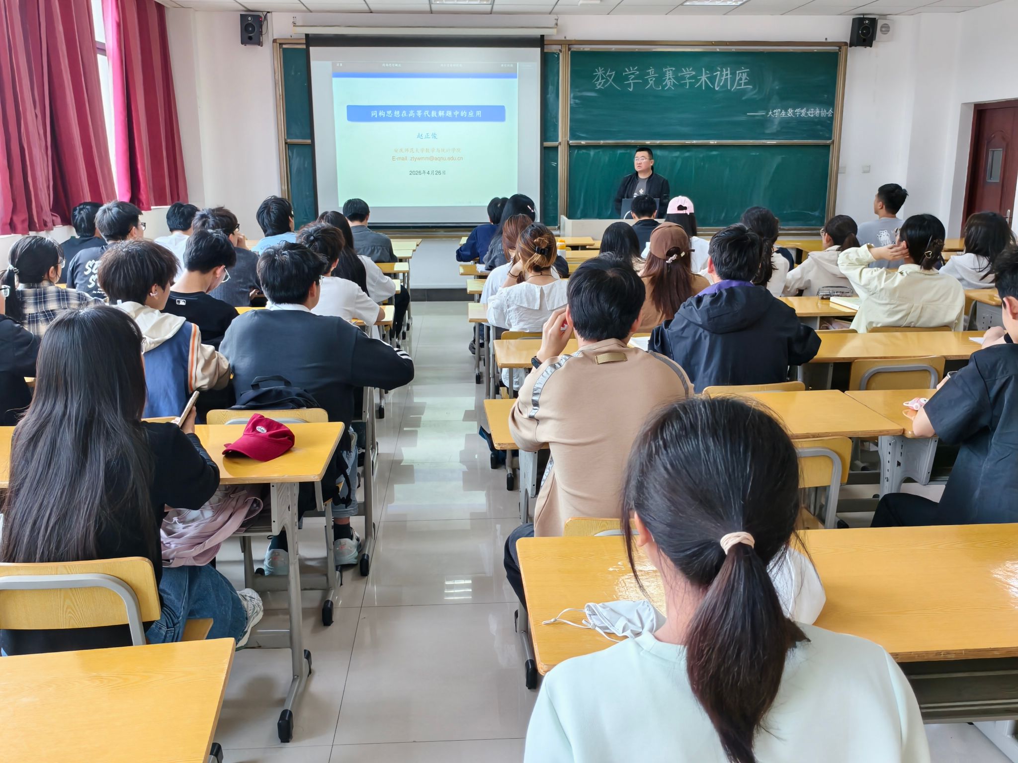 4月25日和26日下午,数学与统计学院在I楼502教室连续举办两场专题讲座。大学生数学建模协会与大学生数学爱好者协会分别邀请陈逢林教授、赵正俊教授主讲,吸引众多学生参与。