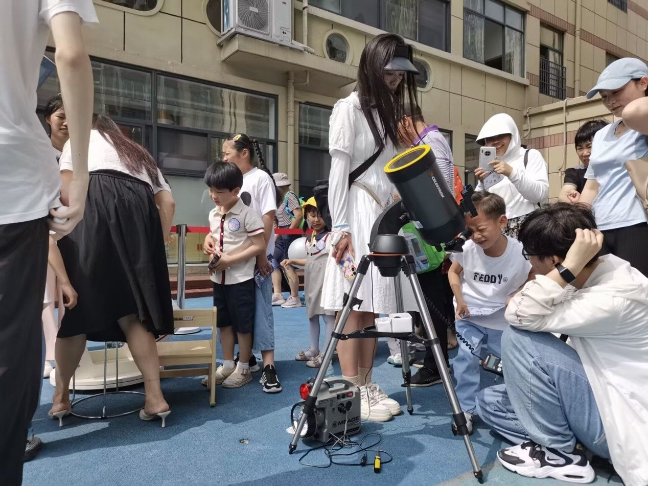 6月1日国际儿童节,安庆师范大学大学生天文爱好者协会与校附属龙城幼儿园共同举办太阳黑子科普观测活动。本次活动,天文协会提供了配备太阳滤镜,适合小朋友观测的地平式和道布森式望远镜各一台,并由协会理事对太阳黑子进行科普讲解。