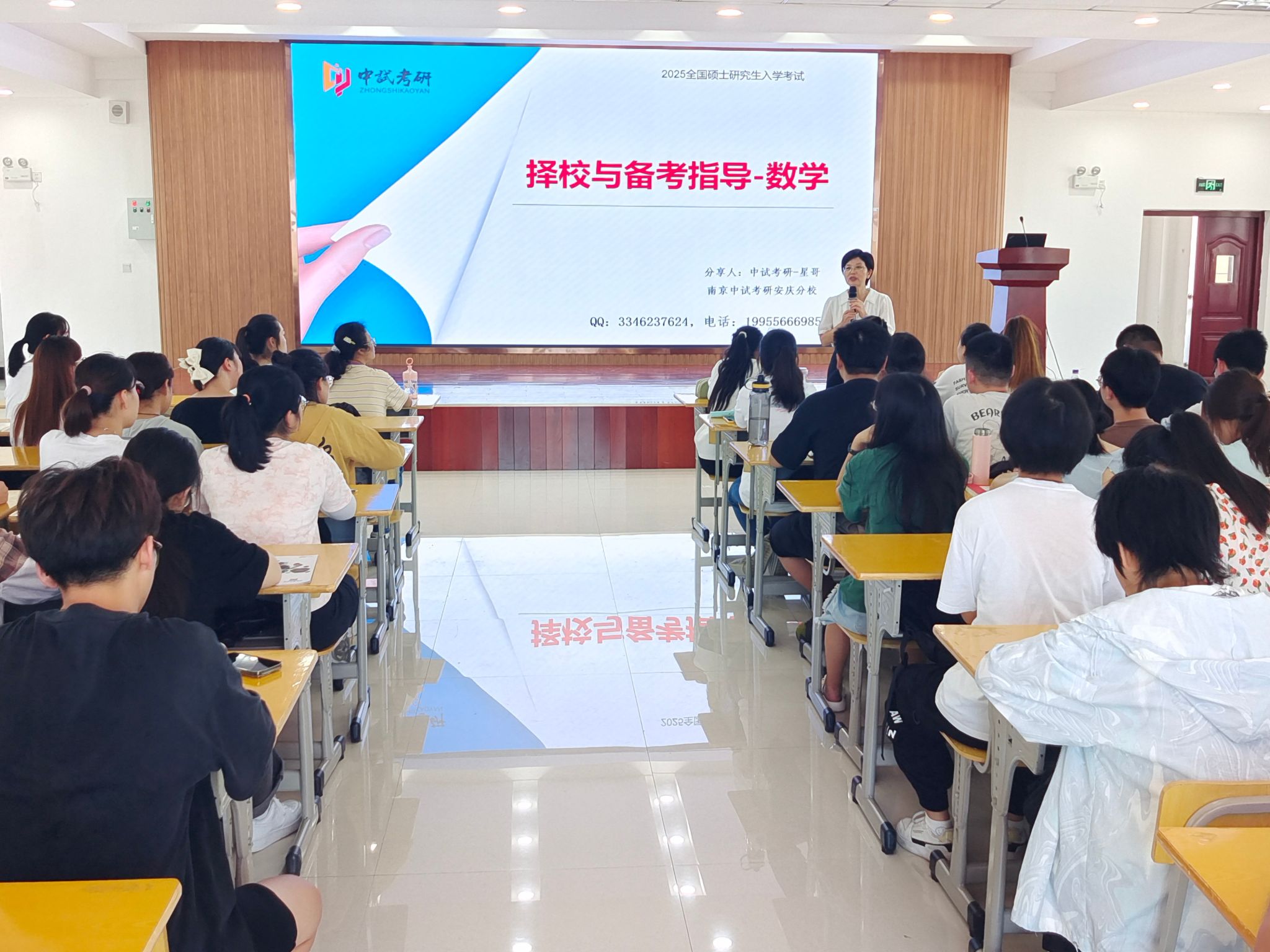 9月6日,数理学院在数理楼401报告厅举办数学专业考研公益讲座。学院邀请中试考研资深专业老师开展考研择校与备考指导,学院党委副书记彭芳珍、辅导员老师和数学与应用数学专业近200名学生参会。