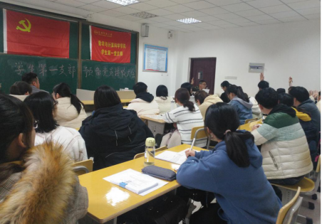 12月19日下午,我院学生第一党支部在数学楼205教室召开预备党员接收大会,会议由党支部书记李会葆同志主持,党支部正式党员、预备党员、发展对象共计30余人参加了会议。