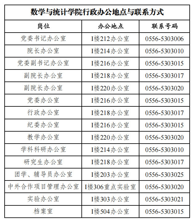 联系电话:行政办公室0556-5303017